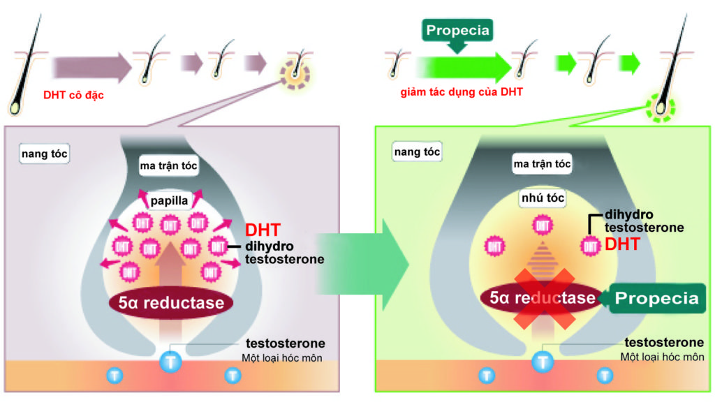 Cơ chế hoạt động của Propecia (Sơ đồ rất dễ hiểu) Mỗi sơ đồ là thông tin MSD
